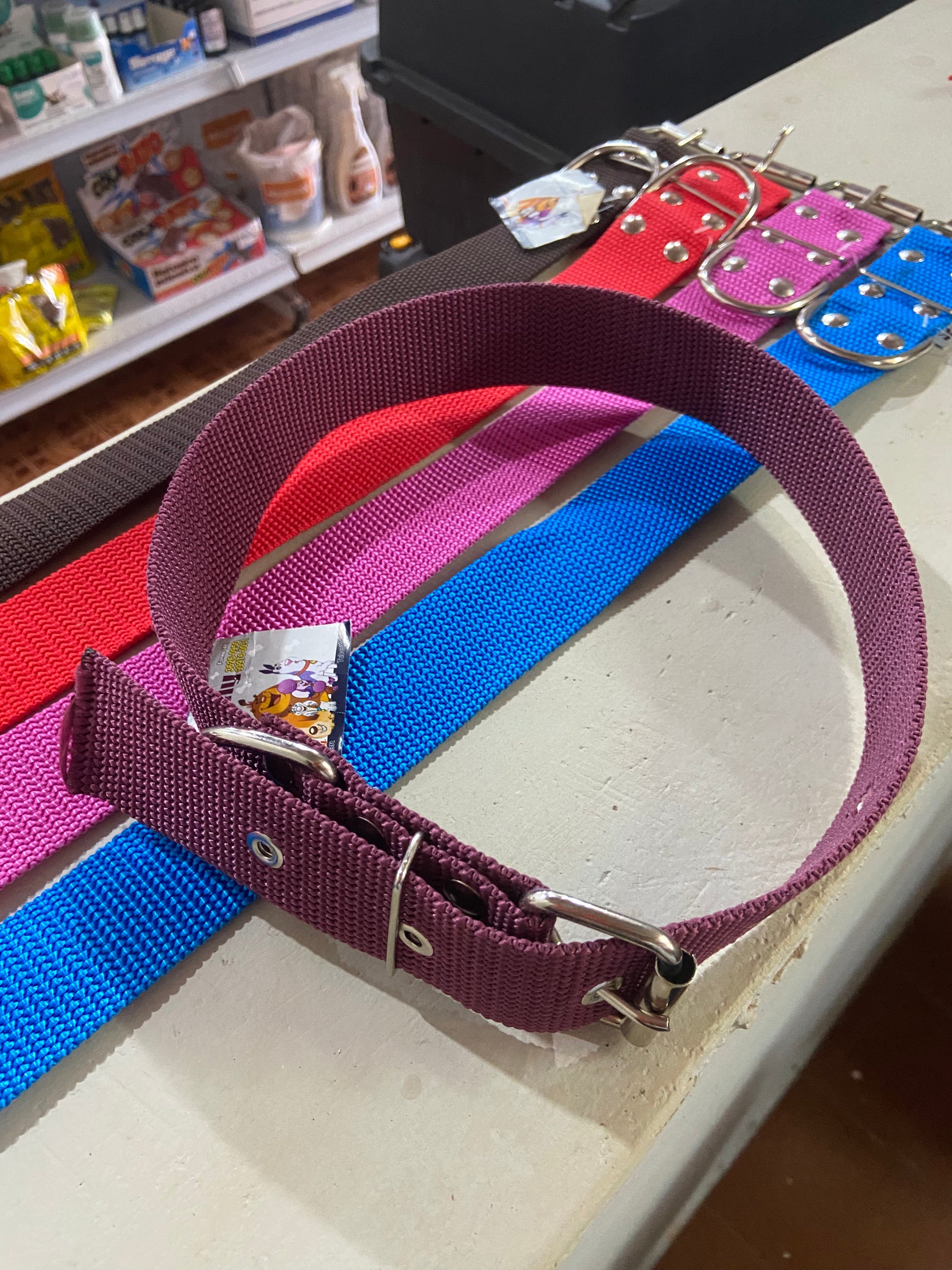 Esta coleira de nylon combina resistência e estilo, disponível em vários tamanhos e cores para se ajustar perfeitamente ao seu pet. Feita com material durável, garante conforto e segurança durante passeios e atividades diárias. Escolha a cor que mais combina com seu amigo e aproveite a praticidade de uma coleira confiável e versátil.